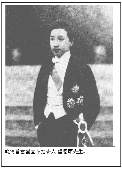 接替盛氏家族事业的是盛恩颐,他根本不知道如何守业,只想吃喝玩乐,抽烟赌博,他娶了11房姨太,为每个姨太太配一幢花园洋房,一部进口轿车,十几个男仆女佣;建造跑马场,养了75匹马供自己娱乐;买下上海进口的第一辆奔驰轿车,并将车把换成银的,刻上自己的名字;他白天睡觉,晚间去夜场娱乐,和皖系军阀卢永祥的儿子卢小嘉豪赌,一夜之间将上海百栋房子连同弄堂,一口气全输给了对方,这只是九牛一毛-----