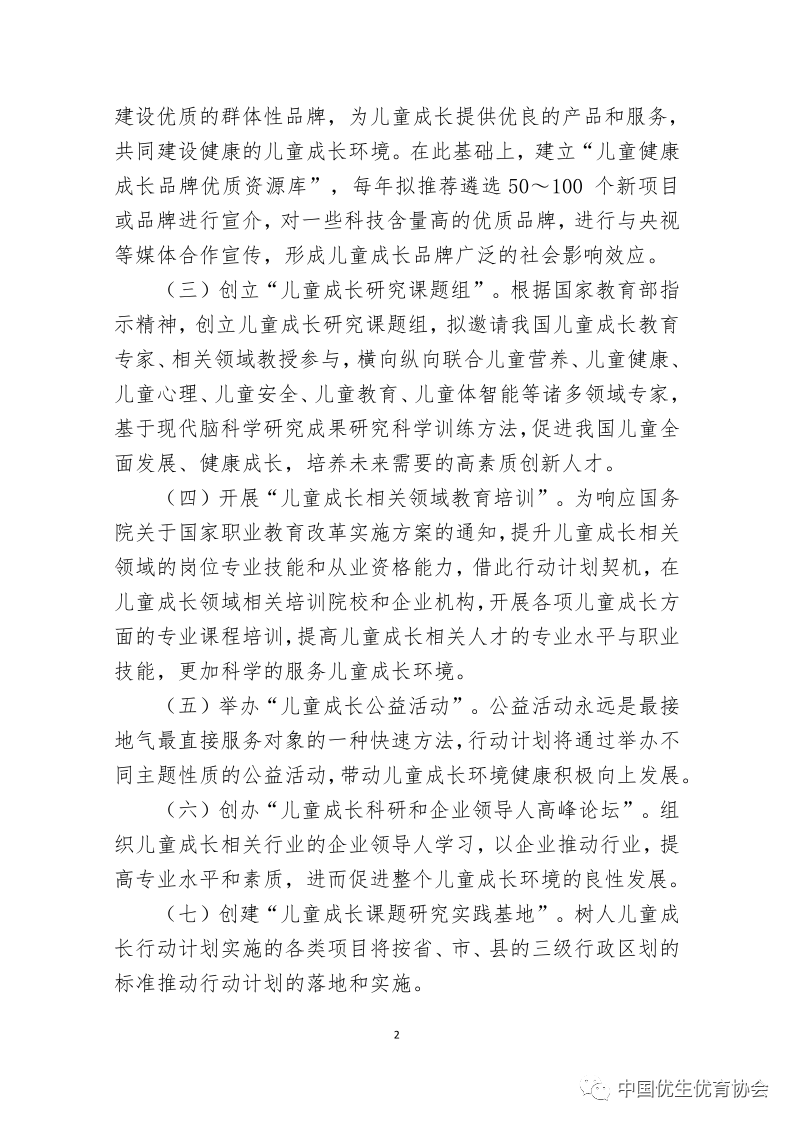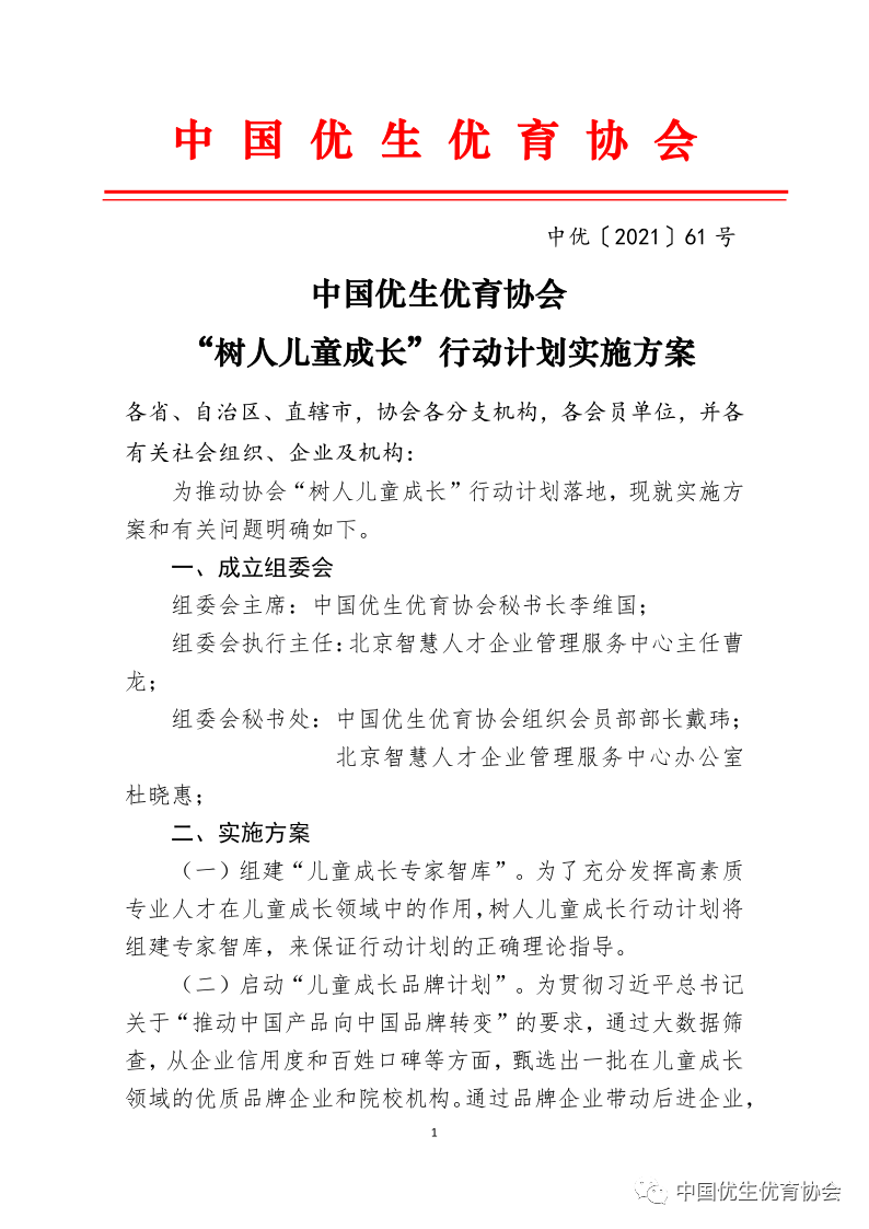 中国优生优育协会“树人儿童成长”行动计划实施方案